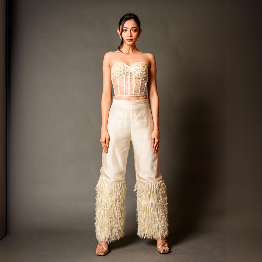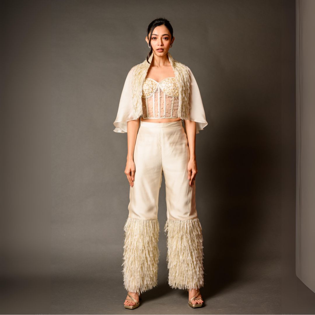 Style: Corset Top, Feather Pants, and Feather Cape
