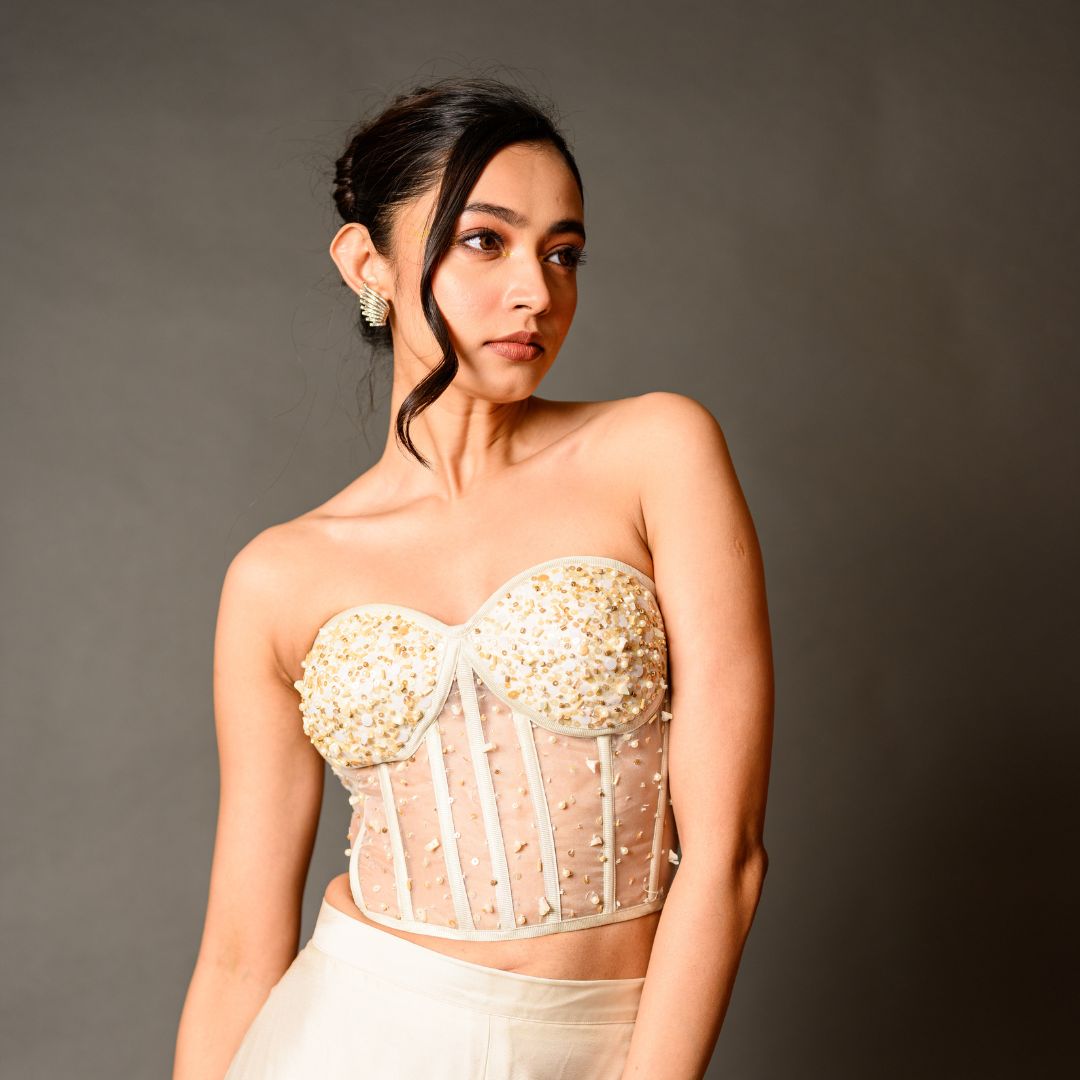 Fierce vibes only! This corset top, feather cape, and tailored trousers set is for the woman who’s unapologetically herself. When you’re ready to serve looks and take names, this is the outfit that’ll make it happen!