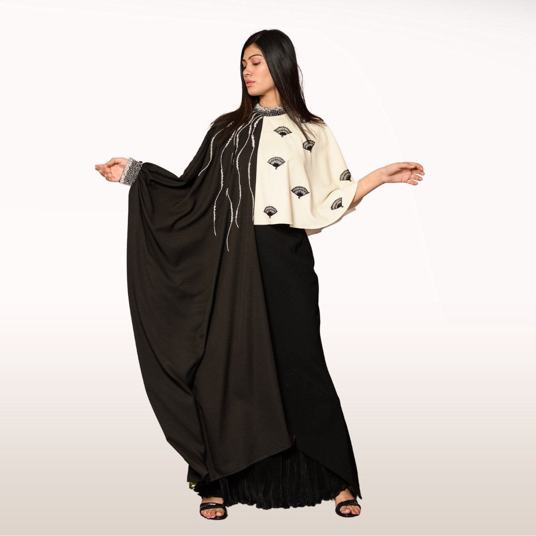 Drama meets elegance with this black cape and mermaid skirt duo. It’s the perfect outfit for making an entrance at any event, giving you that mysterious and sultry vibe all in one. Cape on, confidence up!